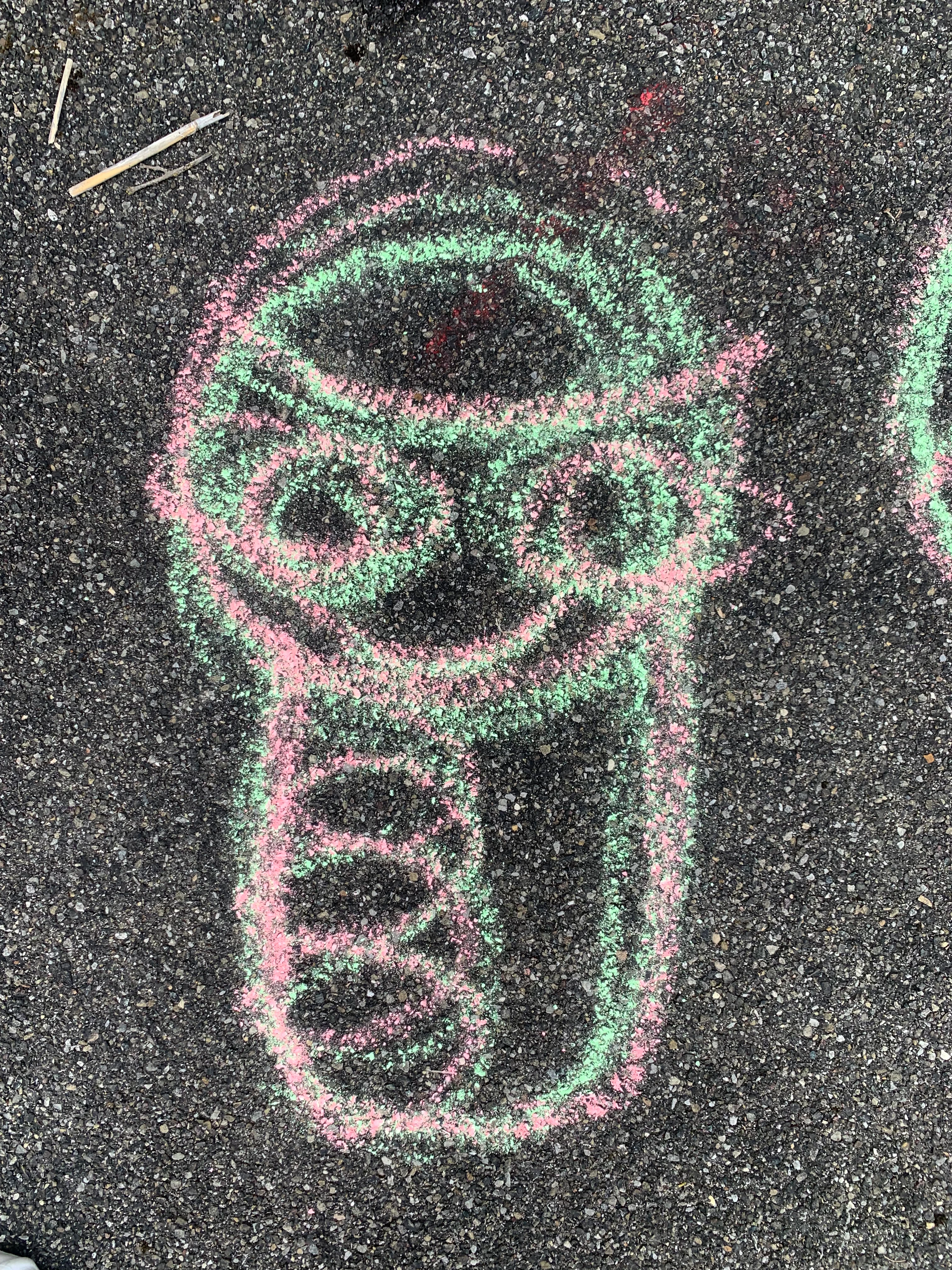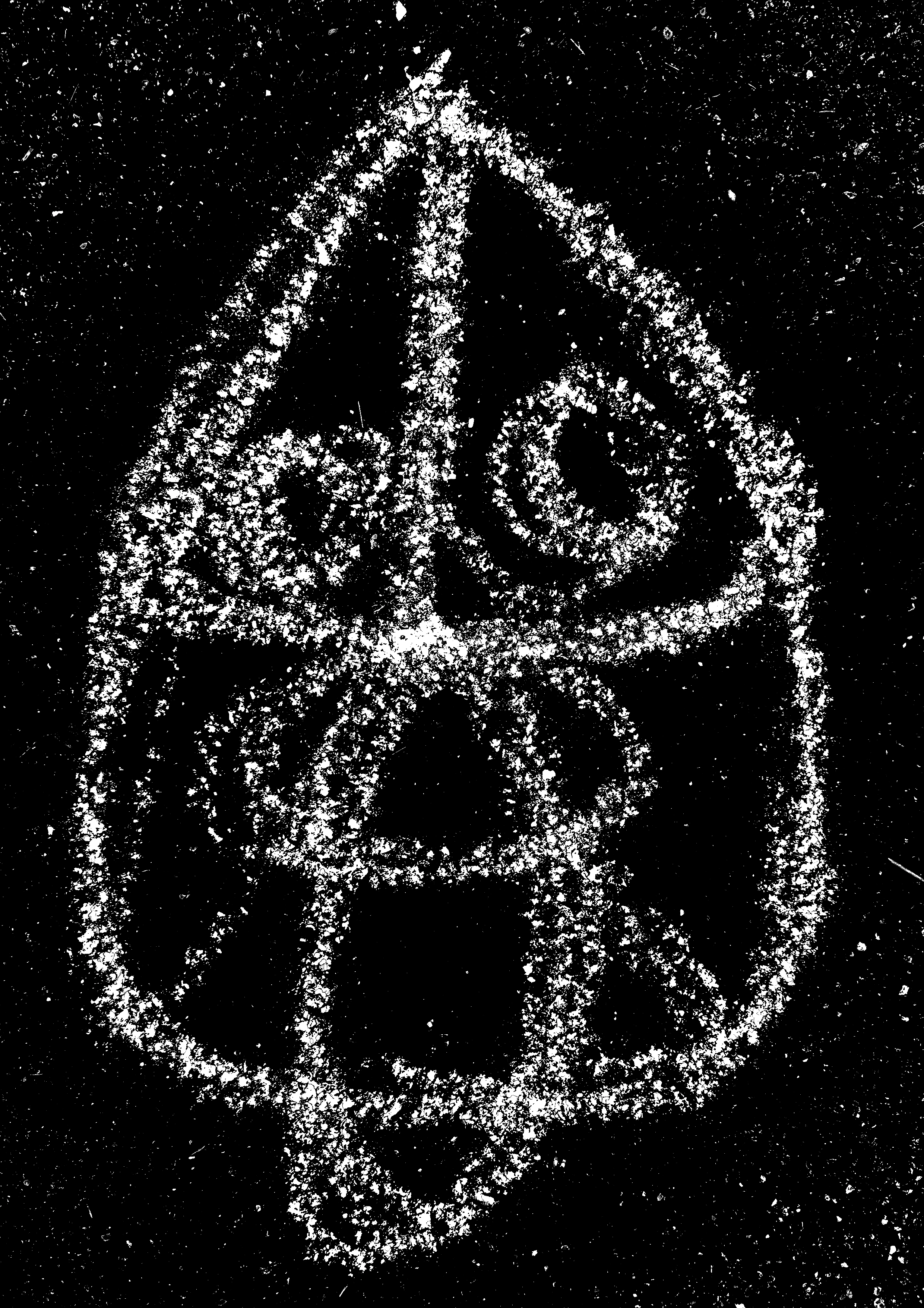 Symbols are created with charcoal on a pavement and later transformed into a pattern.